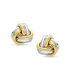 The cool gleam of white gold and the warmth of yellow gold combine in these attractive and stylish stud earrings. The classic love knot motif is beautifully rendered in two tone gold with polished...