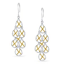 Beaded Chandelier Two Tone Earrings in Silver and 14K Yellow Gold