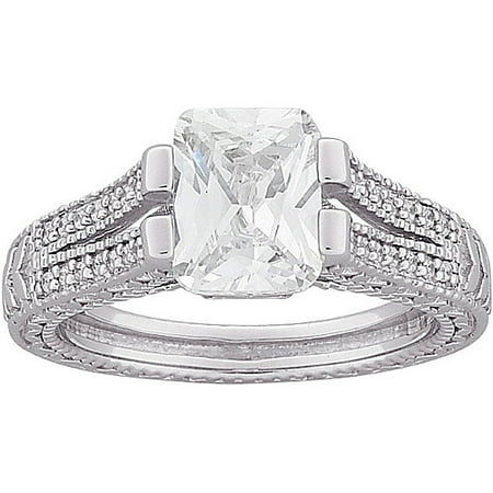 This vintage-styled Emerald-Cut CZ Split Band displays your style effortlessly. The radiant stone is set in stunning sterling silver.