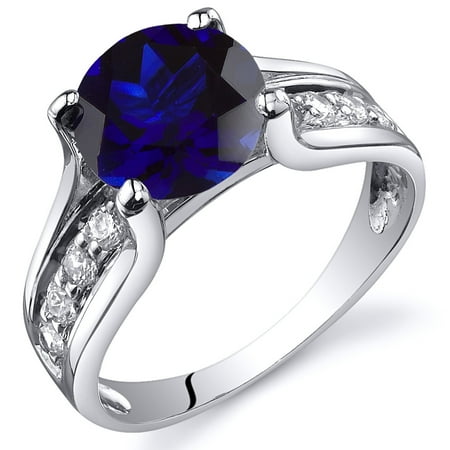 Peora 2.50 Ct Created Blue Sapphire Engagement Ring in Rhodium-Plated Sterling Silver